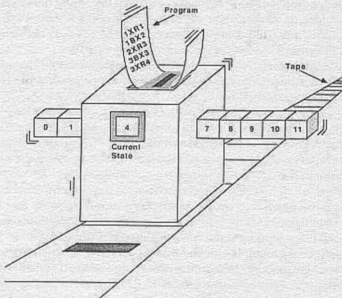 图灵机是可执行的指令集,每一台图灵机都可以表达成一个可计算数,图灵接下来证明,不存在一台通用图灵机,可以判定一个给定数字,是否为一个非循环图灵机的描述数,大致的证明思路: