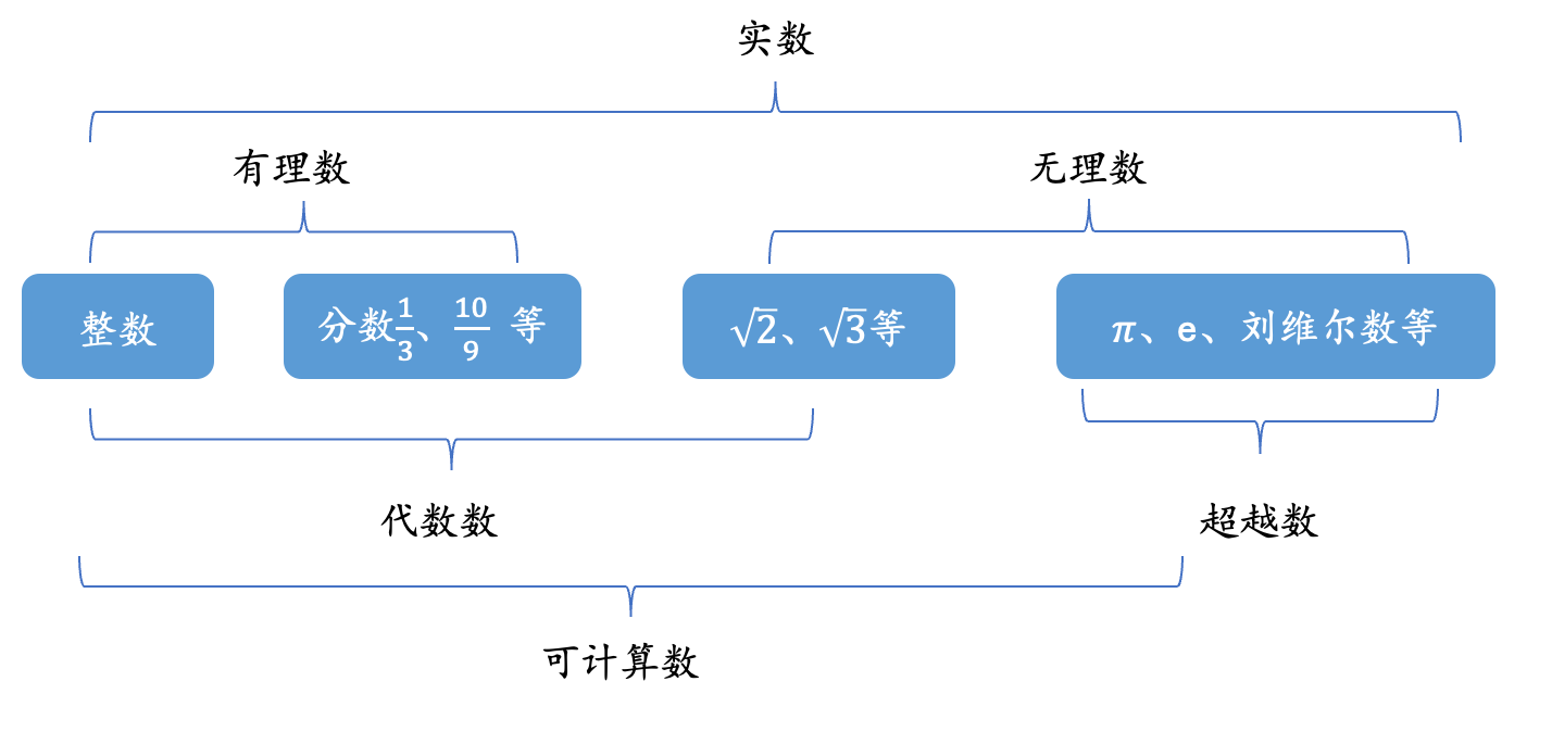 如果代数方程的系数是有理数,那么求解出来的根则称为代数数。数学家研究发现,一些数不是任何整系数多项式方程的根,他们被称为超越数,比如自然对数底e就是一个超越数。不是多项式方程的根,一定程度上意味着这些数是不可计算的,我们无法在有穷步骤内定义这些数的求解算法。
