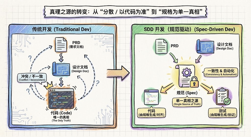 AI时代,这些本质性问题依然存在,不过随着SDD这样的新范式出现,我们开始有了新的应对方式: