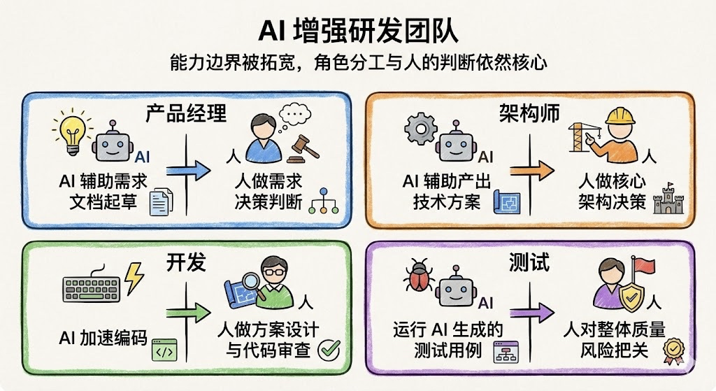 虽然SDD模糊了团队人员的能力边界,但并不意味着出现了全能开发者,现代软件工程的角色分工的价值并未发生动摇: