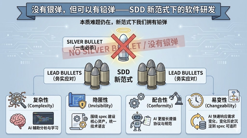 在新的SDD研发范式下,生产力能够大幅提升,纵使依然没有银弹,但至少我们可以拥有铅弹。